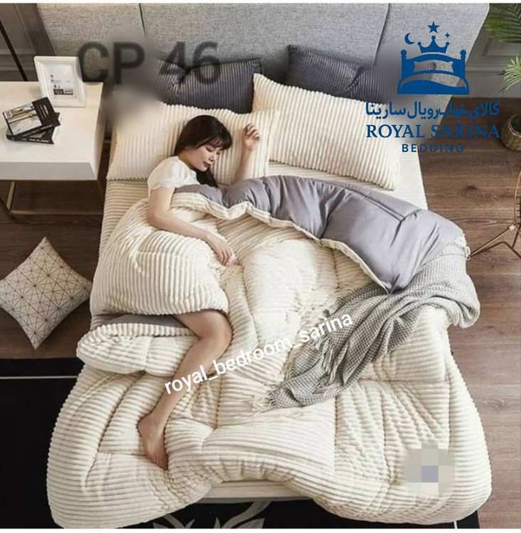 ☑️_یه روی لحاف و روبالشتی مخمل و روی دیگر لحاف ، روبالشتی و ملافه ساده میباشد ،